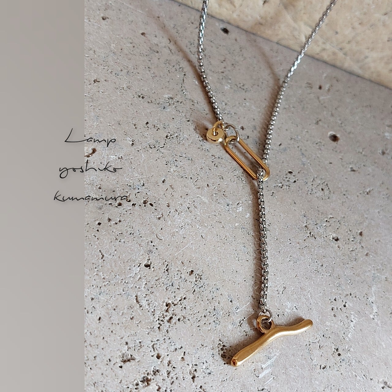 コンビカラー Y字 ネックレス オールステンレス ラリエット ツートン フリーサイズ